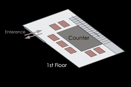 木の温もりを存分に堪能できるテーブル席。 各席間には仕切りを設けております。