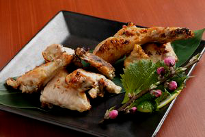 | 宮崎日向地鶏 骨付き手羽元の炭火焼き |